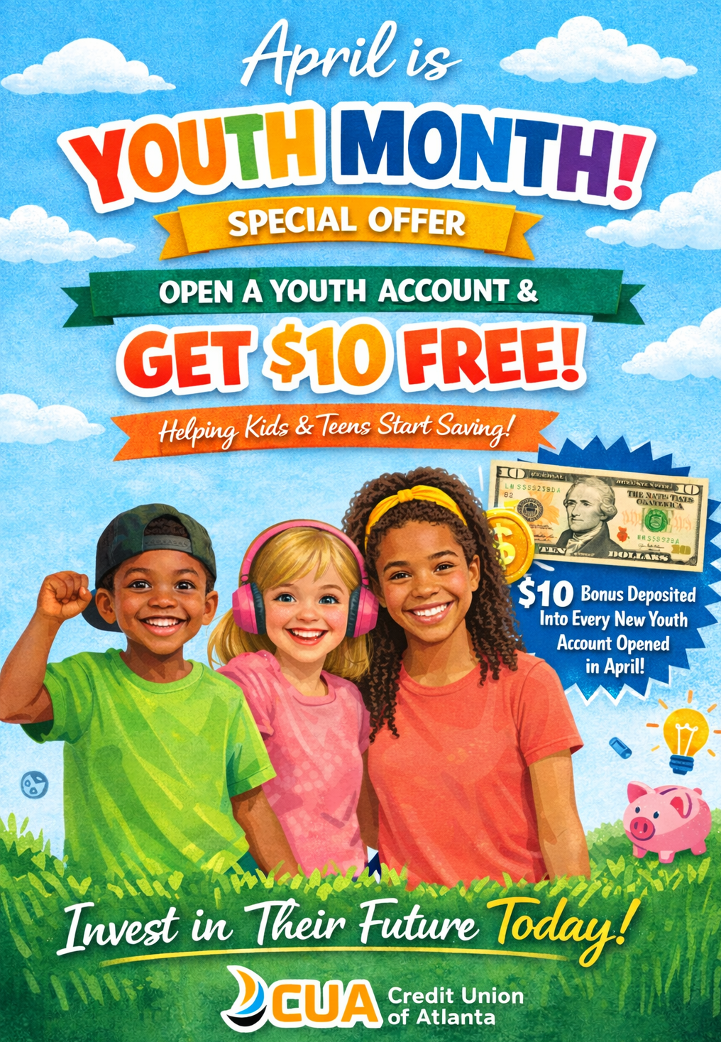 It’s the perfect time to help your kids and teens start building smart money habits. Open a Youth Account this April and we’ll give them a FREE $10 bonus to kickstart their savings!